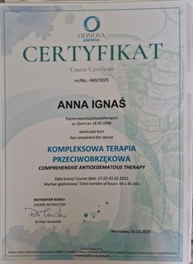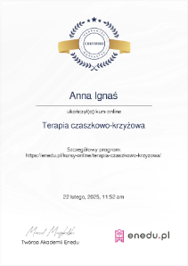 Ukończyłam Uniwersytet Medyczny im. Karola Marcinkowskiego w Poznaniu. Jako doświadczona fizjoterapeutka oferuję terapię manualną, terapię czaszkowo-krzyżową oraz rehabilitację. Moim priorytetem jest eliminacja bólu i przywracanie pełnej sprawności. Stosuję delikatne techniki przeciwbólowe oraz skuteczną pinoterapię, która poprawia zakres ruchu w stawach. Każdą terapię uzupełniam indywidualnie dobranymi ćwiczeniami, aby utrwalić efekty masażu i rehabilitacji. Jeśli interesuje Cię profesjonalna fizjoterapia, terapia manualna, terapia czaszkowo-krzyżowa lub terapia przeciwobrzękowa w Kołobrzegu, zapraszam do kontaktu.